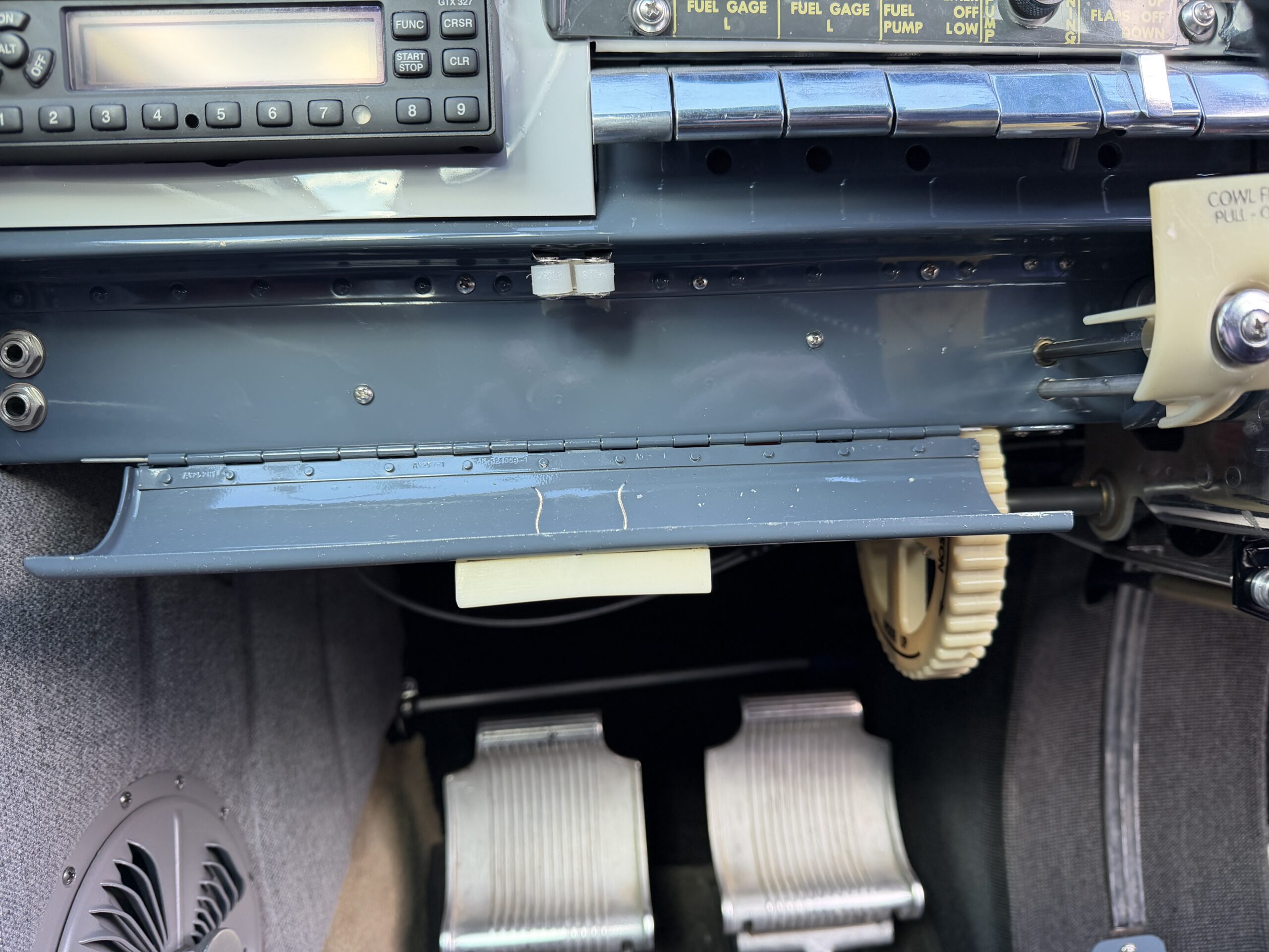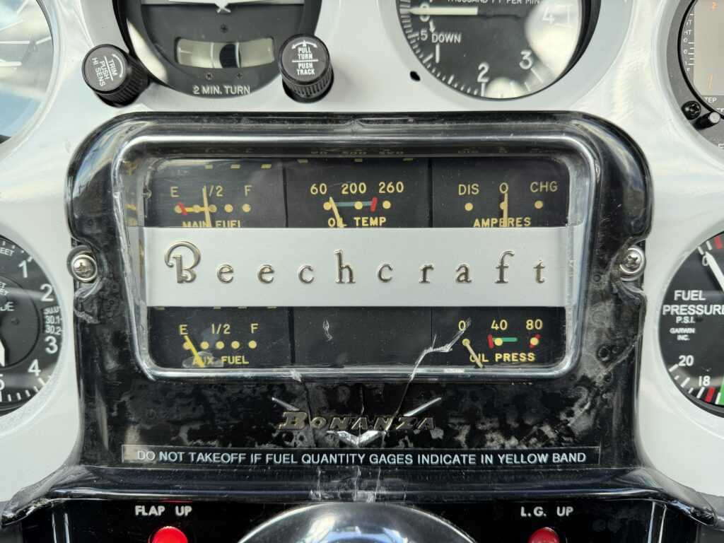 - Cracked glass cover over “Beechcraft” engine gauge cluster